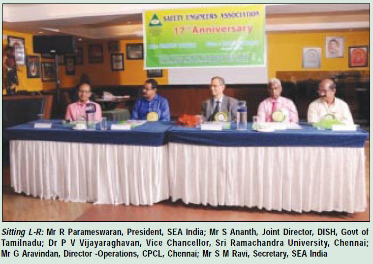 Dr P V Vijayaraghavan, Vice Chancellor, Sri Ramachandra University , Chennai was the chief guest and he congratulated Safety Engineers and the members of SEA India and appreciated their support and contributions to the industry.