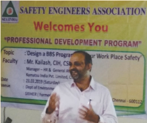 Mr S Kailash, CIH, CSP, Manager & General Affairs, Komatsu India (P) Ltd, Chennai delivered a special talk on “Design a BBS Programme for your work place Safety”.